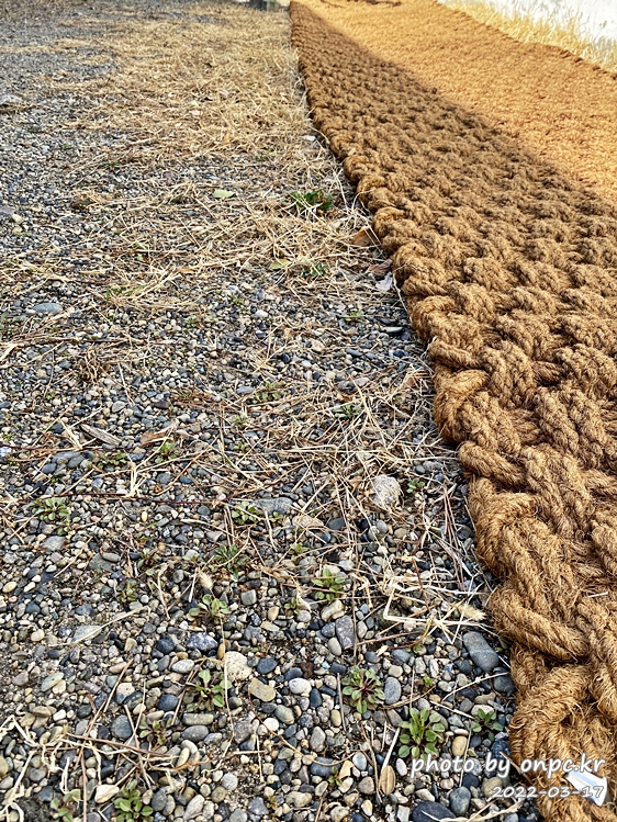 위 사진은 비탈면 산책로에 야자 매트가 시공되어 있는 모습이에요.