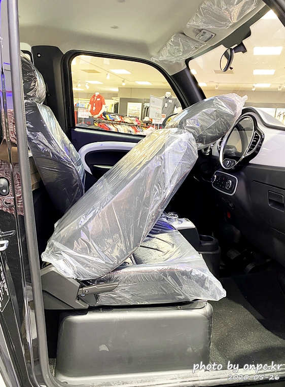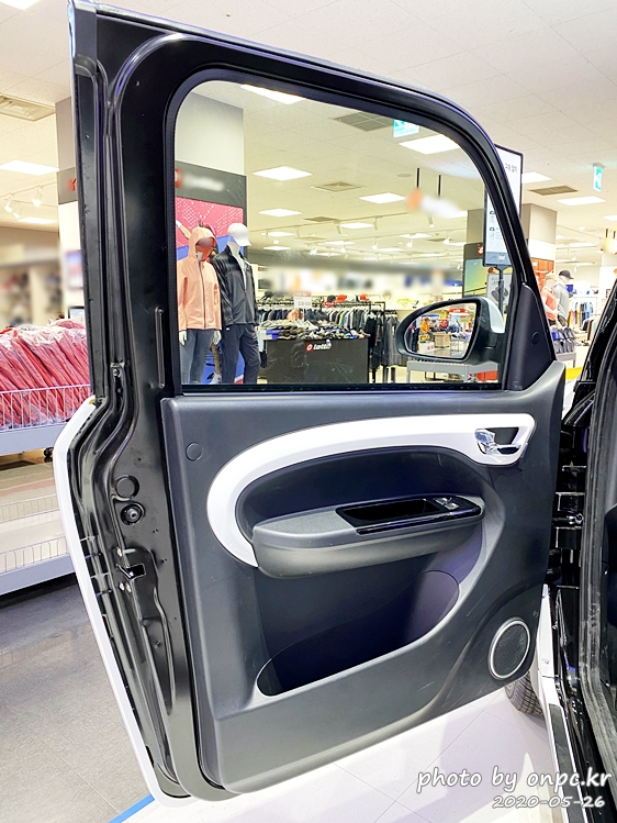 운전석 문을 열고 보면 앞, 뒤, 옆 모두 차량용 유리로 되어있어요. 트위지와는 다른 점이에요.