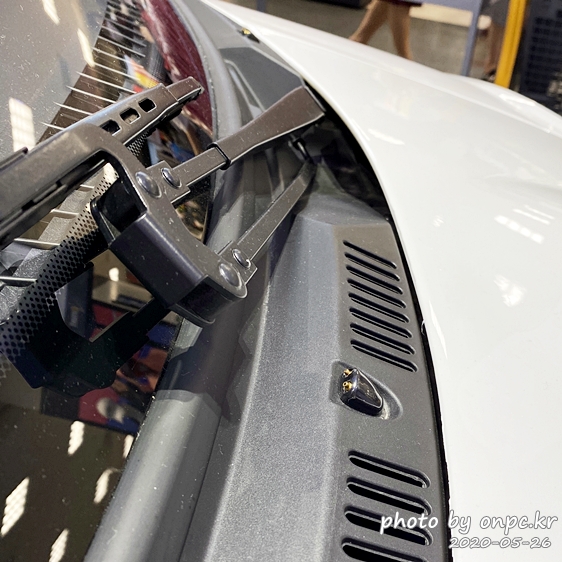 워셔액 분사돼서 나오는 구멍은 전시차라서 마감이 살짝 덜 된 듯 보이네요.