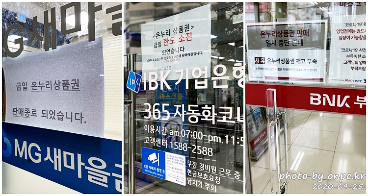 모두 금일 온누리상품권은 모두 판매 종료, 한도 소진되었다는 안내가 입구에 붙어있었어요.