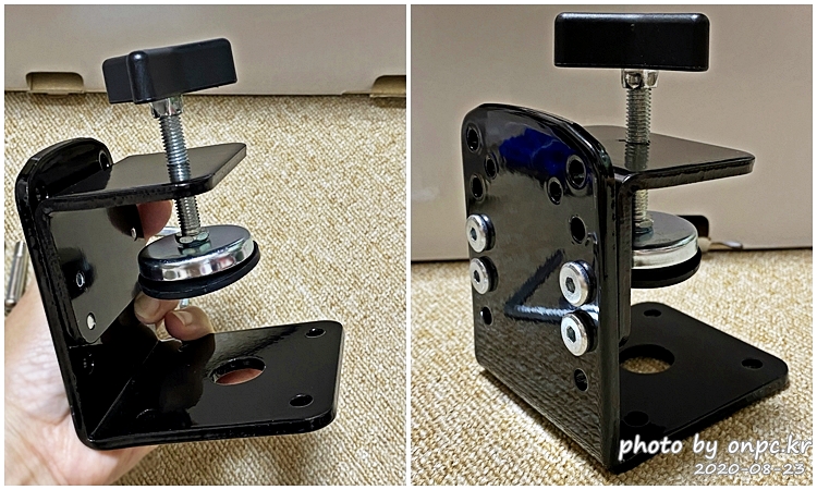 Step2: 책상 모서리를 잡아주는 클램프를 설치해서 고정하는 방법입니다.