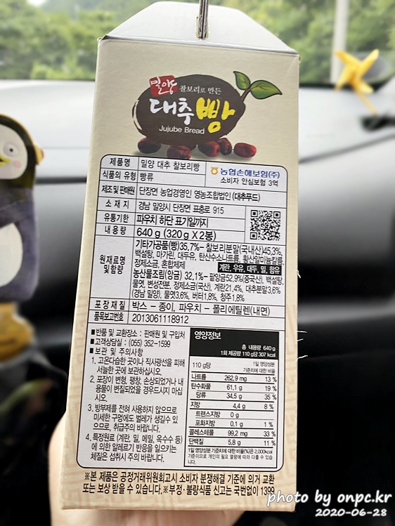 제품명은 밀양 대추 찰보리빵. 원재료명 및 함량, 영양정보 참고하세요~
