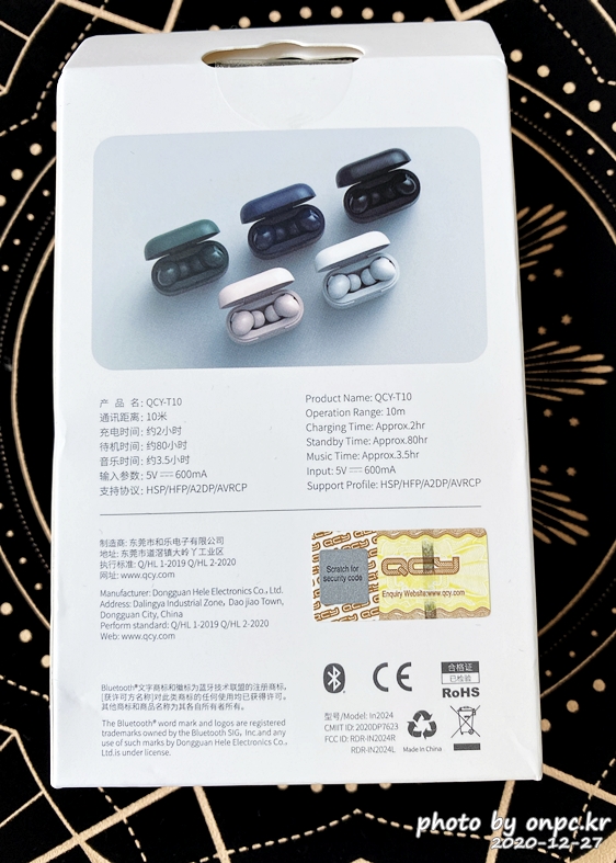 QCY-T10 블루투스 이어폰 박스 포장 상태입니다.