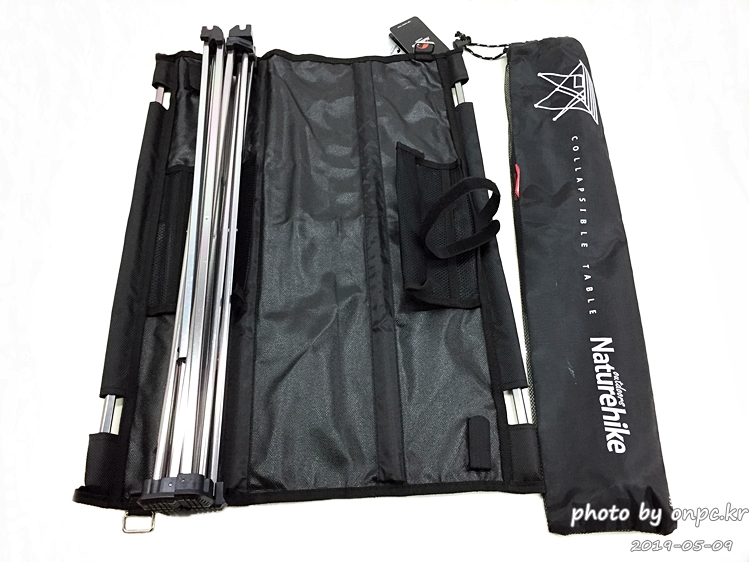 벨크로 벨트를 풀면 테이블 원단과 테이블 다리가 나옵니다.