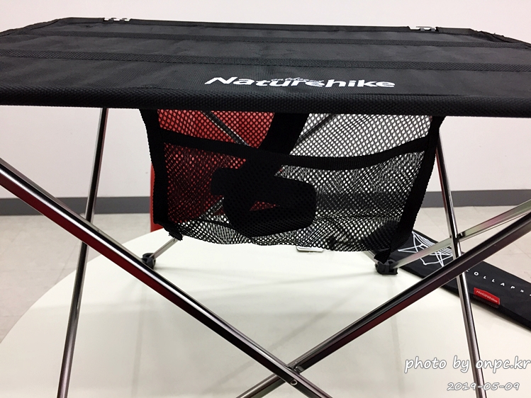 테이블 양옆으로 매쉬로 된 가로로 긴 작은 수납 포켓도 있어요.