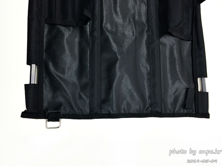 포켓이 여러모로 쓸모 있어 보이네요~ 수납할 때 묶는 벨크로 벨트와 휴대폰을 넣으면 좋아요~
