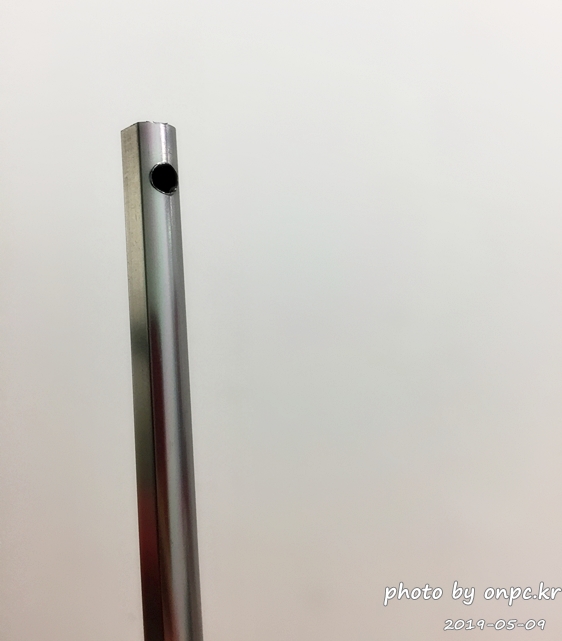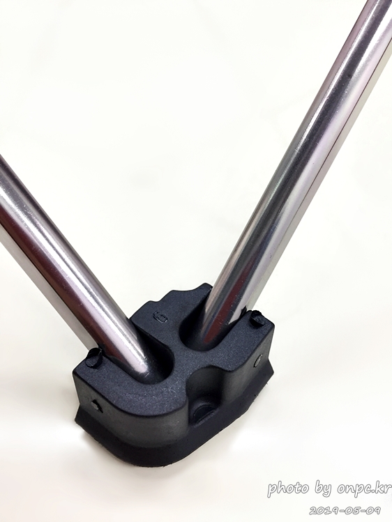알루미늄 끝부분에 구멍이 보이는데 이 구멍과 위 플라스틱 부분을 꼽아주면 다리가 완성됩니다.