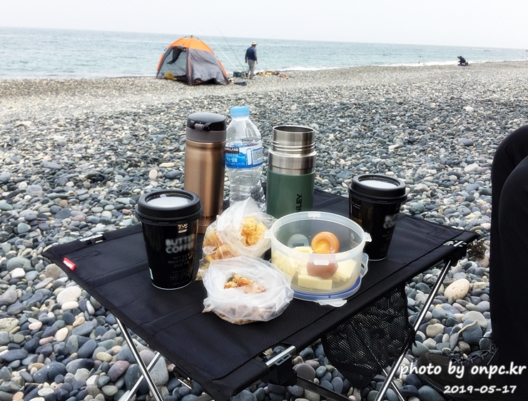해파랑길 바닷가 트레킹을 마치고 테이블을 처음으로 직접 사용해봤어요.
