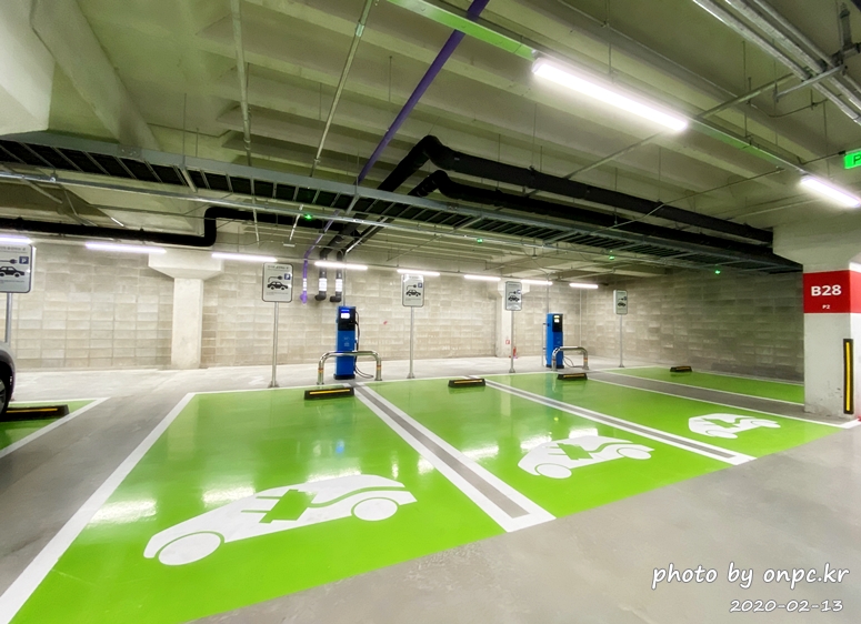 위치: P1 층에 3대, P2 층에 5대 / 충전기 종류: 완속 충전기