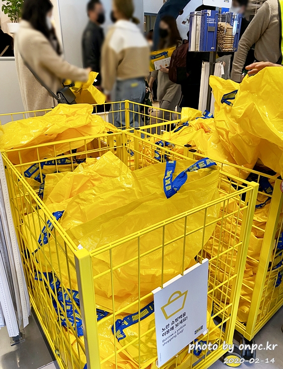 매장에 들어가기 전 노란 쇼핑백 하나씩은 챙겨서 출발합니다.