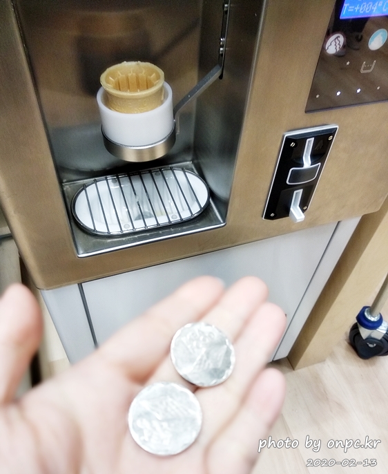 소프트콘 2개를 주문하고 계산하면 카운터에서 2개의 토큰을 주는데요.