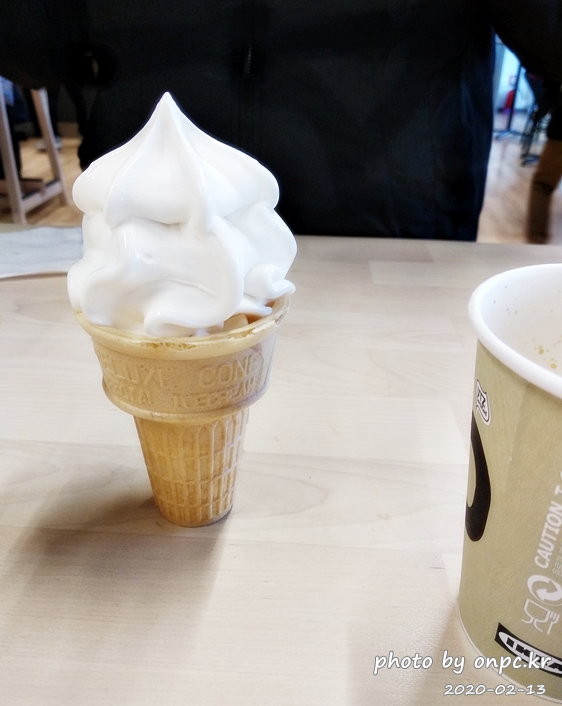 400원의 착한 가격, 크기는 좀 작아도 콘 아래까지 꽉 채워진 부드러운 소프트 아이스크림~