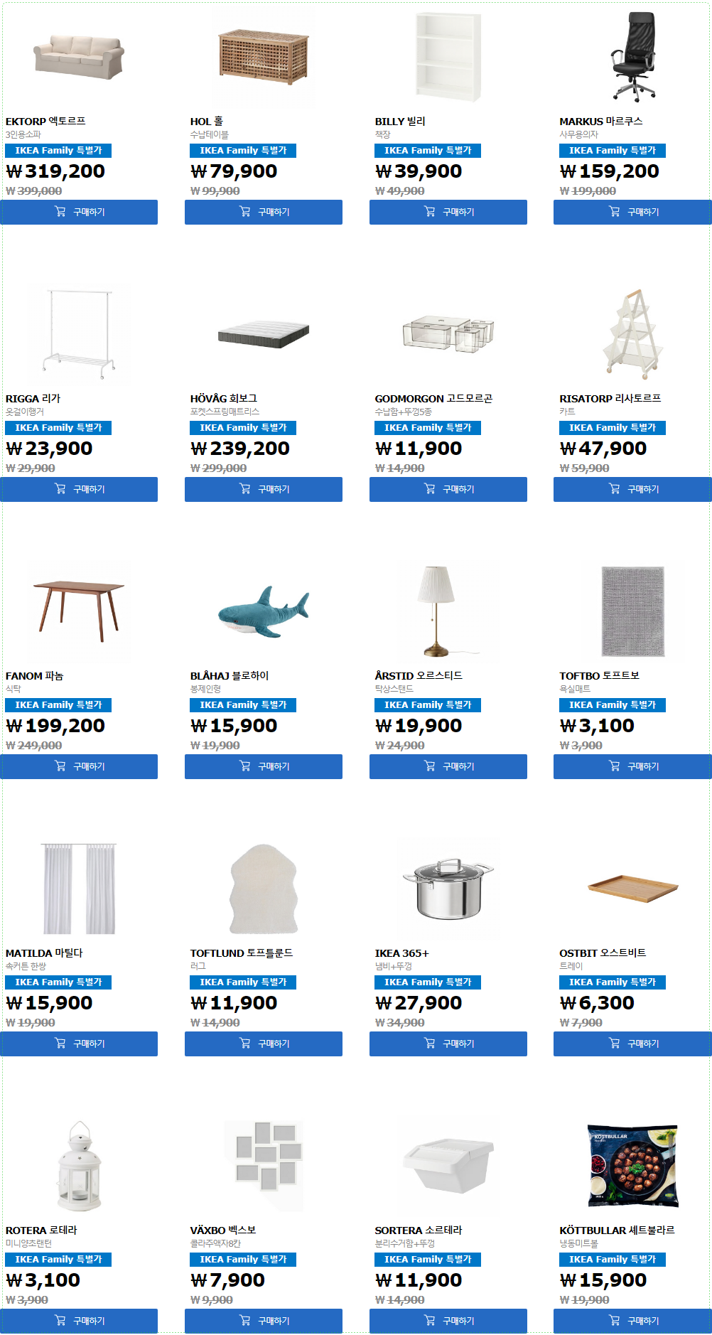 IKEA Family 멤버 적용, 멤버당 2개까지 구매 가능 / 아래 할인 품목을 참고하세요.(출처:이케아)