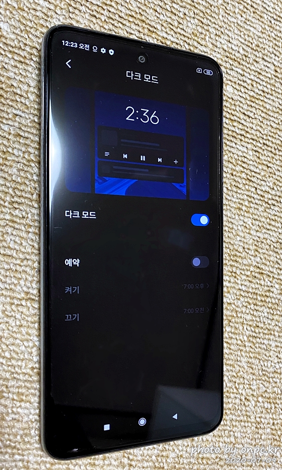 늦은 밤 눈의 피로를 줄여주는 다크 모드, 시간 예약으로 일반/다크 모드로 설정이 가능합니다.