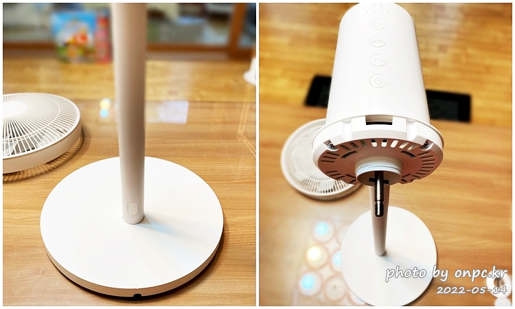 역시나 샤오미 디자인스럽게 선풍기 하부에는 조작 버튼 하나 없는 깔끔하고 심플하네요.
