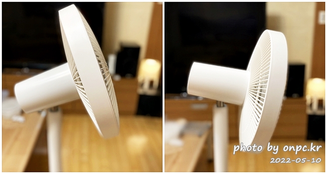 쉽게 조절할 순 있지만 일반 선풍기처럼 목 뒤 버튼 누르고 1단, 2단, 3단 아래 위로 조절하는 방식이 아니래서 귀찮은 불편함 그래서 단점이라고 생각할 수도 있어요.