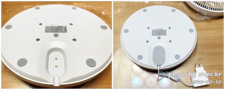 리튬 배터리가 내장되어 있는 선풍기 받침 부분으로 바닥에는 충전 포트가 자리하고 있어요.