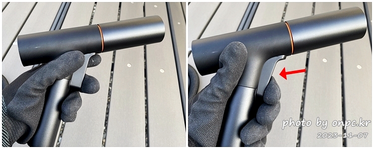 스프레이 건 본체는 깔끔하고 심플합니다. 디자인만큼 컬러도 고급스러워요~