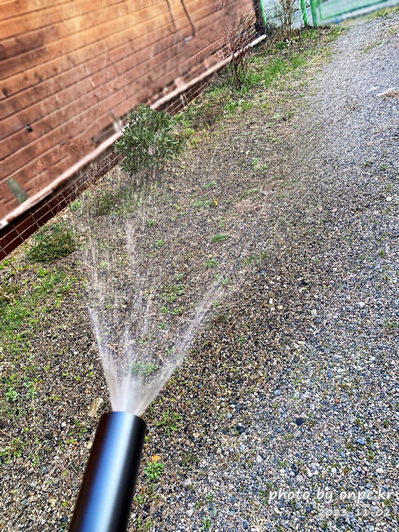 넓은 범위를 커버해서 한 번에 나무와 꽃에 물 줄 때 편하게 쓰고 있어요.