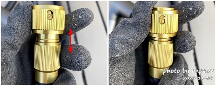 스프레이 건의 분사기 부분과 호스 결합 부분이에요.