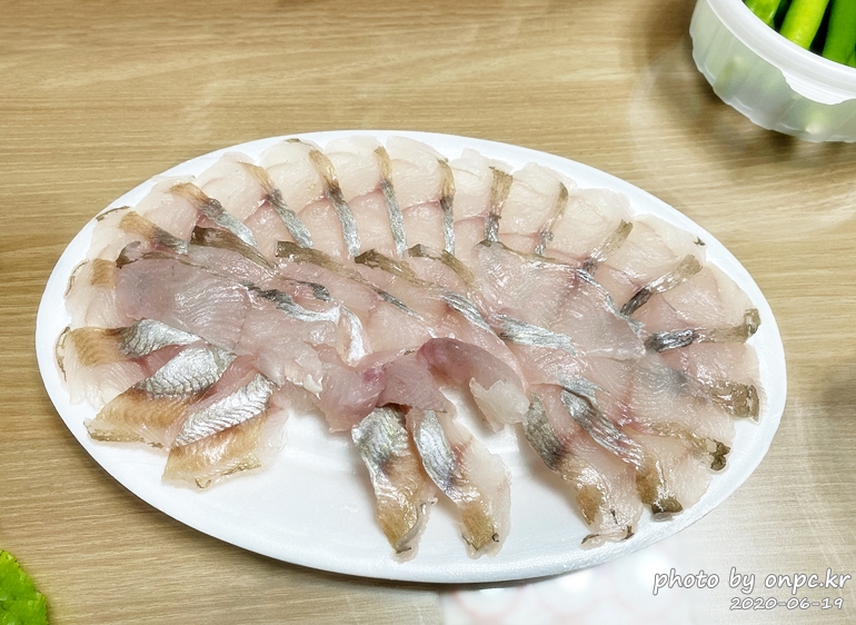 여름에 먹어야 더욱 맛있는 자연산 회~ 전갱이, 갑오징어, 고랑치 회를 맛보았어요.