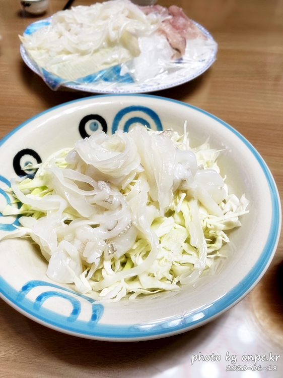식감 좋고 정말 맛있는 갑오징어회~ 고추냉이 간장에도 초장에도 다 맛있어요 ㅋ