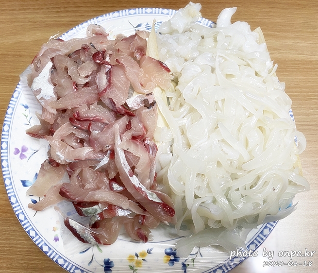 여름에 먹어야 더욱 맛있는 자연산 회~ 전갱이, 갑오징어, 고랑치 회를 맛보았어요.