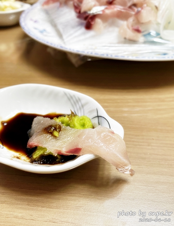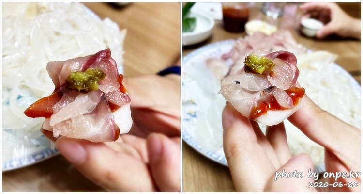 그냥도 먹고~ 간장 살짝 찍고 고추냉이만 얻어서 먹어도 맛있어요.