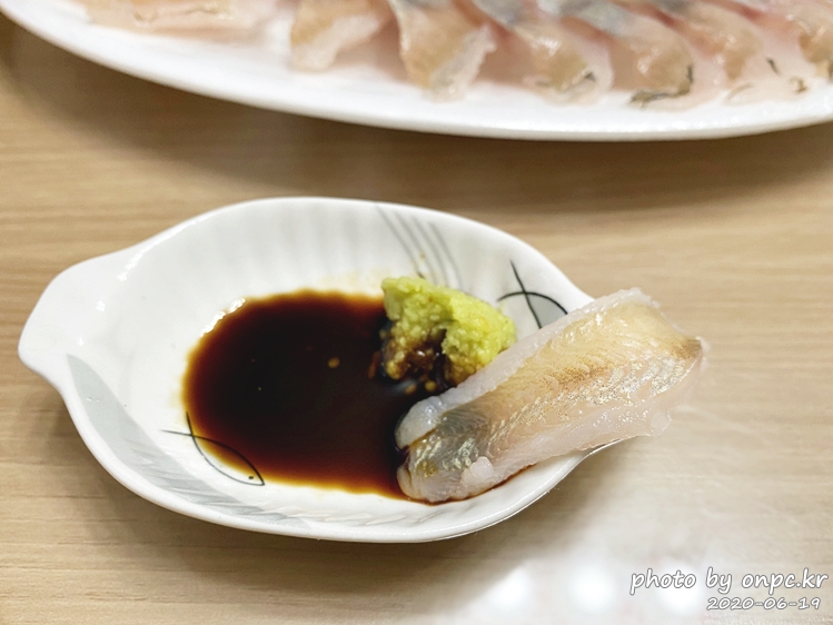 전갱이 회는 회 자체가 고소하고 맛있어서 초장, 쌈장도 굳이 필요 없어요.