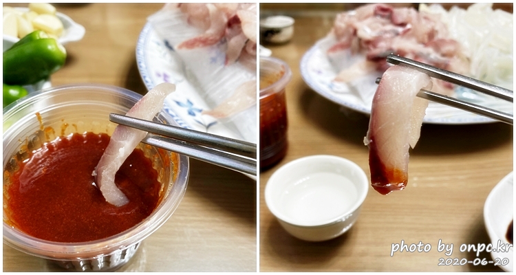 쫀득하고 식감이 너무 좋은~ 고랑치회도 맛보았어요. 고랑치회는 가까운 마트에서 구입했어요~