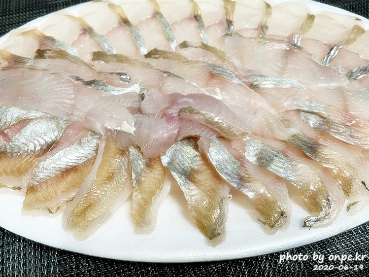 전갱이는 고등어처럼 비린 생선으로 많이 알려져 있어서 비린내 없애려면 껍질 막을 벗기고 회를 뜹니다.