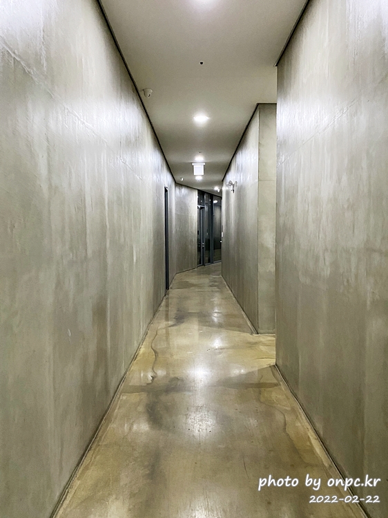방으로 가는 복도 통로 길~ 콘크리트 벽의 빈티지한 느낌이 맘에 드네요.