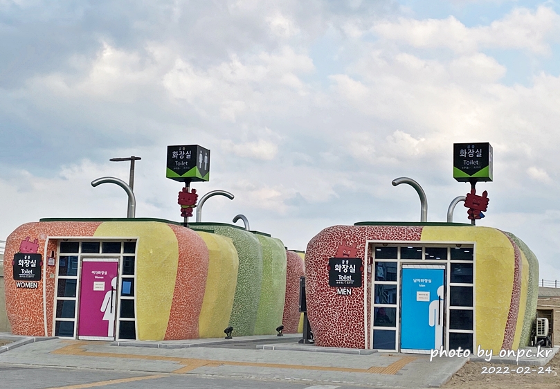 지역 특산물에 맞춰 디자인된 화장실도 보는 재미가 있어요~
