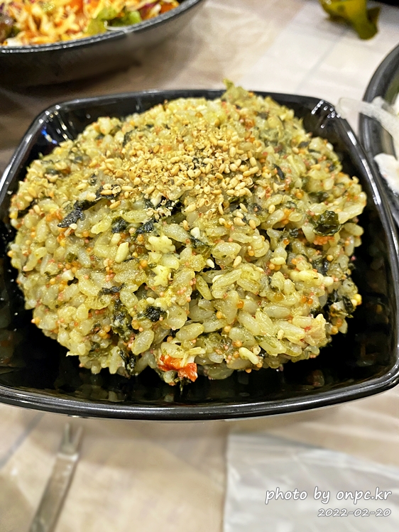 밥 위에 깨도 솔솔 뿌려져 있고~ 참기름 향도 솔솔 나는 고소한 게딱지 밥이에요.