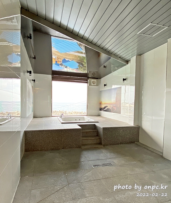 하프도 괜찮은 게 통유리가 온수를 받으면 수증기로 뿌옇게 다 가려져서 어차피 시간이 지나면 바다를 볼 수 없더라고요.