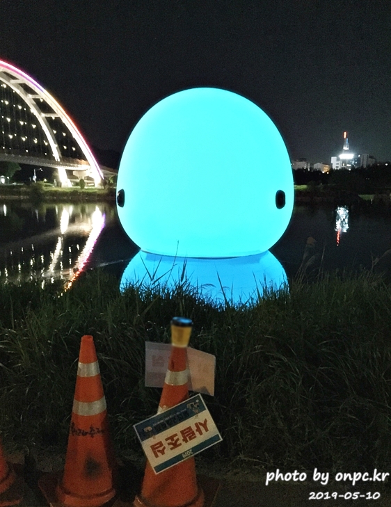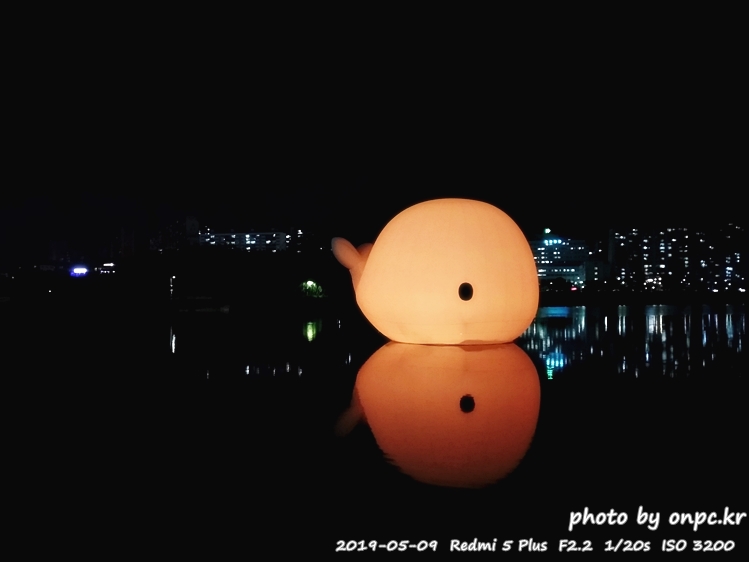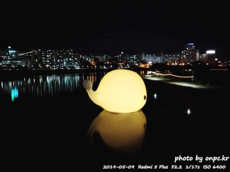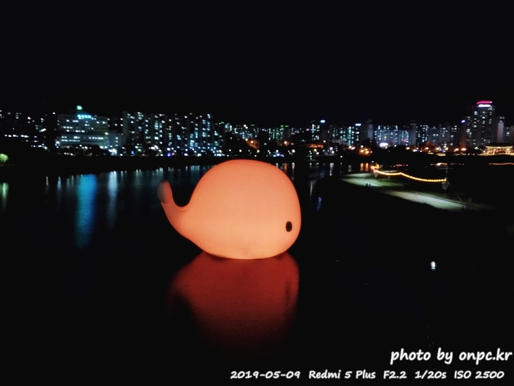 미리 고래축제를 축하하고 알리는 행사로 태화강에 너무나 귀여운 고래 한 마리를 띄웠습니다.