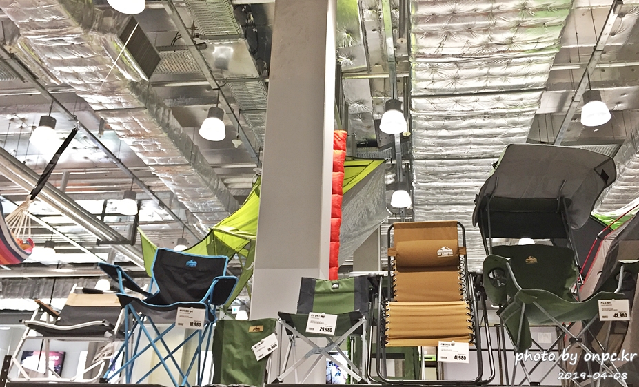 캠핑철에 맞게 입구부터 진열되어 있는 다양한 캠핑용품들을 만나볼 수 있었어요.