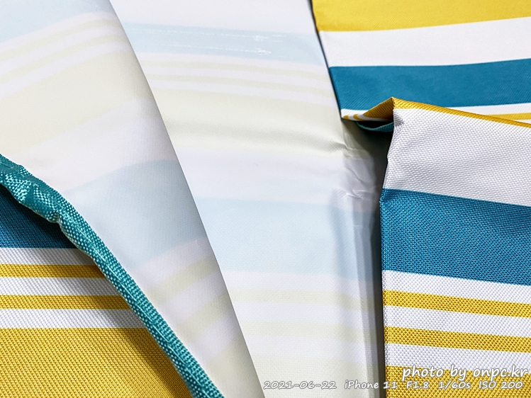 매트 사용 후에는 접어서 밸크로로 고정시켜주면 크기도 작아져요. 손잡이가 있는 돗자리로 이동할 때 좋아요~