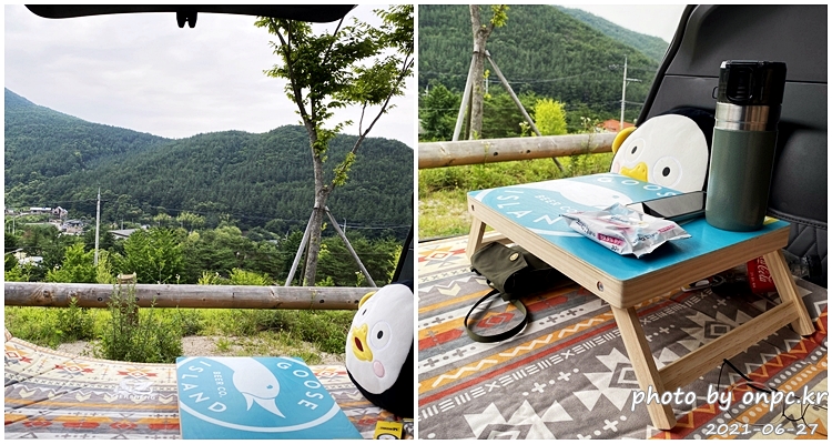 트렁크 공간에서 멋진 산 뷰 보면서 커피 마시고 힐링~ ㅋ