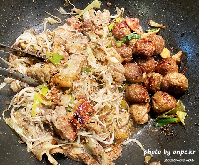 삼겹 숙주 볶음 할 때 미트볼을 함께 넣고 조리해봤어요.