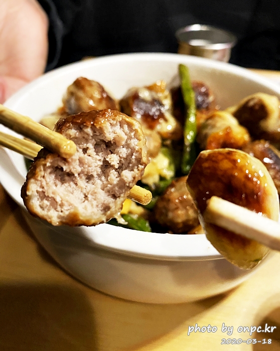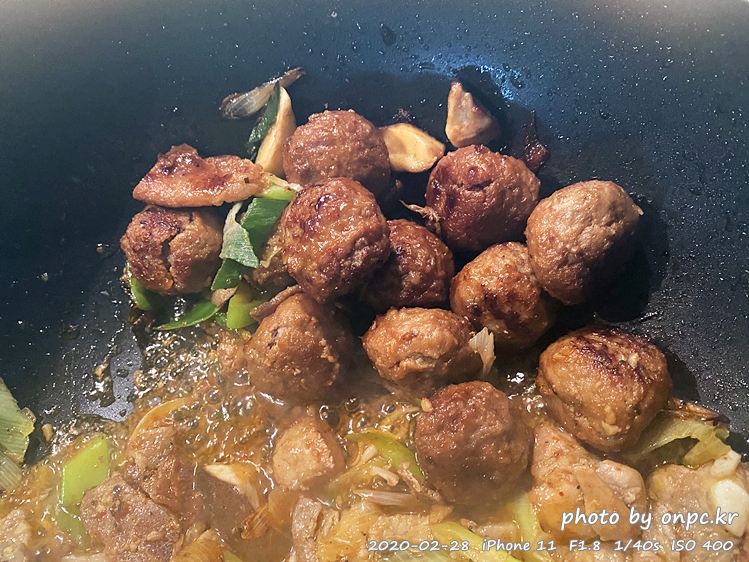 숙주 삼겹살 볶음과도 잘 어울리고 미트볼의 씹는 식감이 좋아요.
