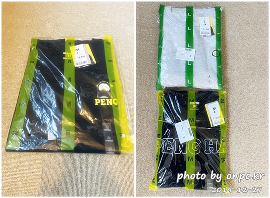 반팔 티셔츠 1, 스웨트 셔츠 2개를 구입했어요.