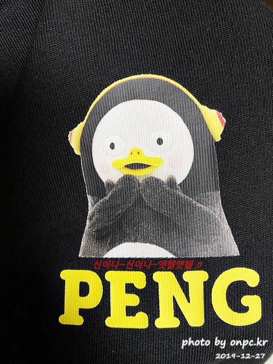 티셔츠 뒷면은 밋밋한데 펭수의 뒷모습이 새겨있었다면 대박이었을텐데.. ㅋ아쉽네요.