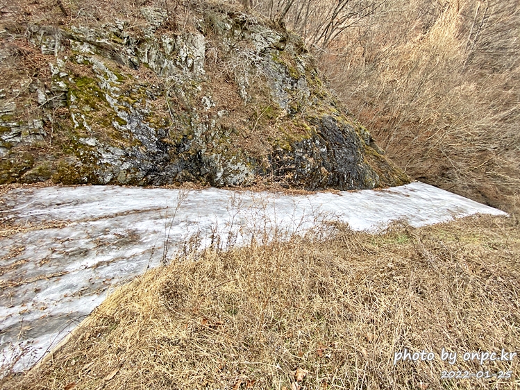 아래로 흘려가는 물은 모두 얼어버려서 마치 폭포 같아 보이네요. 얼음 아래로는 졸졸 흐르는 물소리가 들려요~