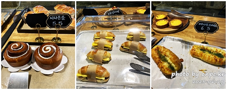 시나몬 롤, 소금 앙버터, 어니언 브레드