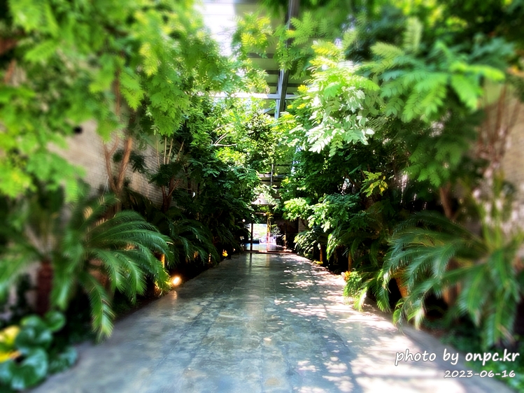 천장에서 들어오는 빛~ 열대식물과 나무들~ 마치 숲 속 길을 걷는듯한 기분도 들고 예뻐요!