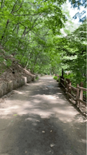 좌우로 계곡물이 흐르고 큰 바위 사이로 지나가는 길~