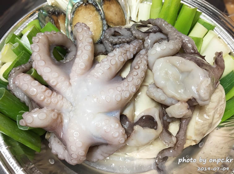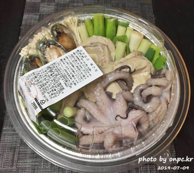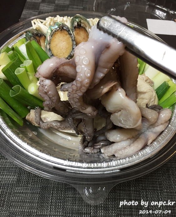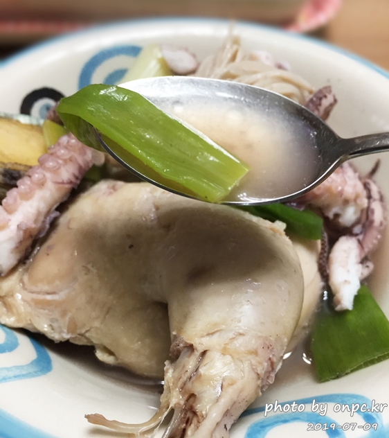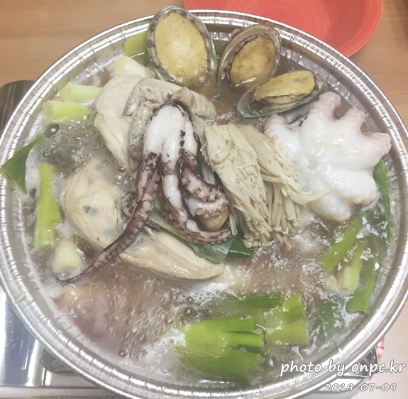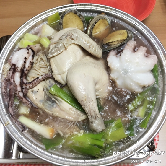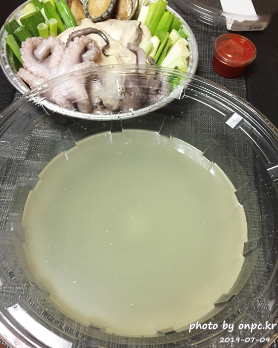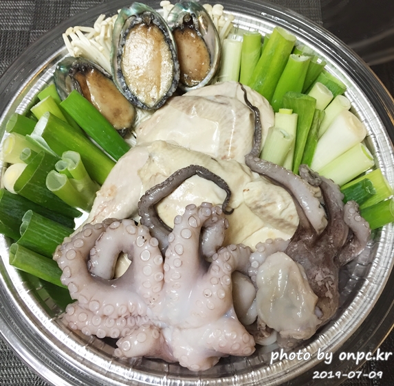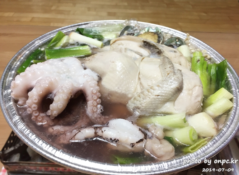 닭고기(국내산), 데친 낙지(태국산), 참전복(국산), 대파(국산), 닭 육수(국산), 감자, 팽이버섯, 건 사리면 포함.