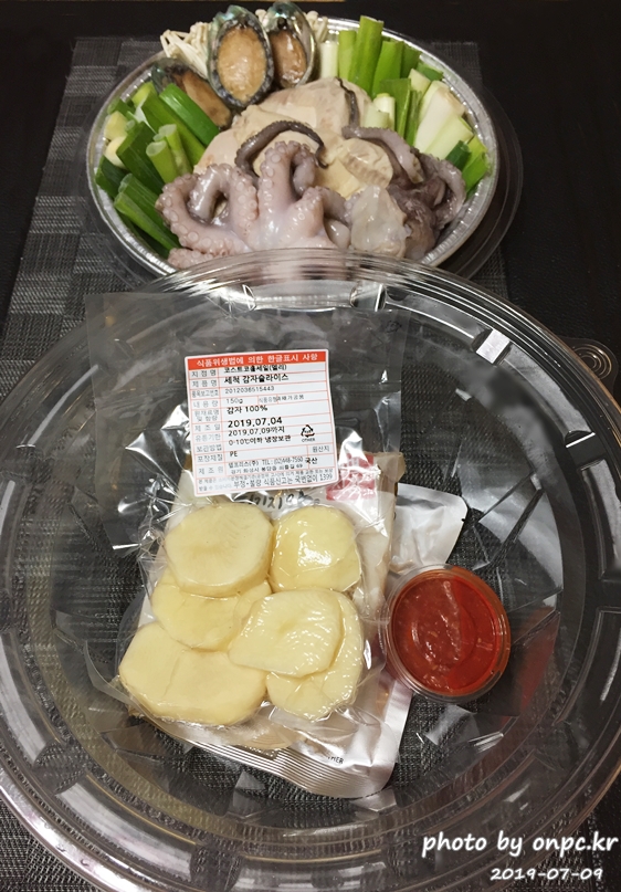 닭 한 마리용 육수: 200g x1 / 세척 감자 슬라이스: 내용량 150g