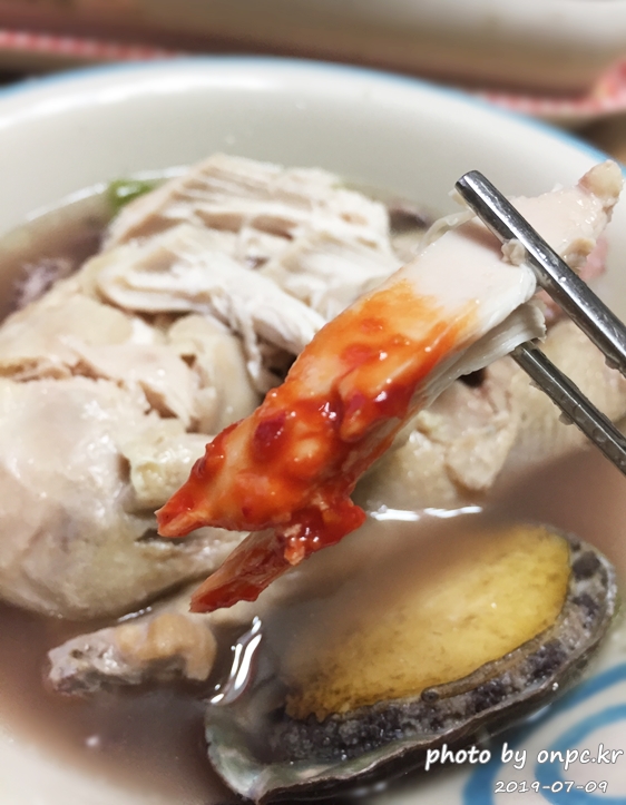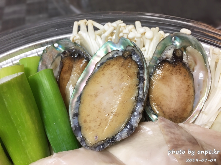 닭도 잘 익었고 전복도 쏙~ 잘 빠지네요.